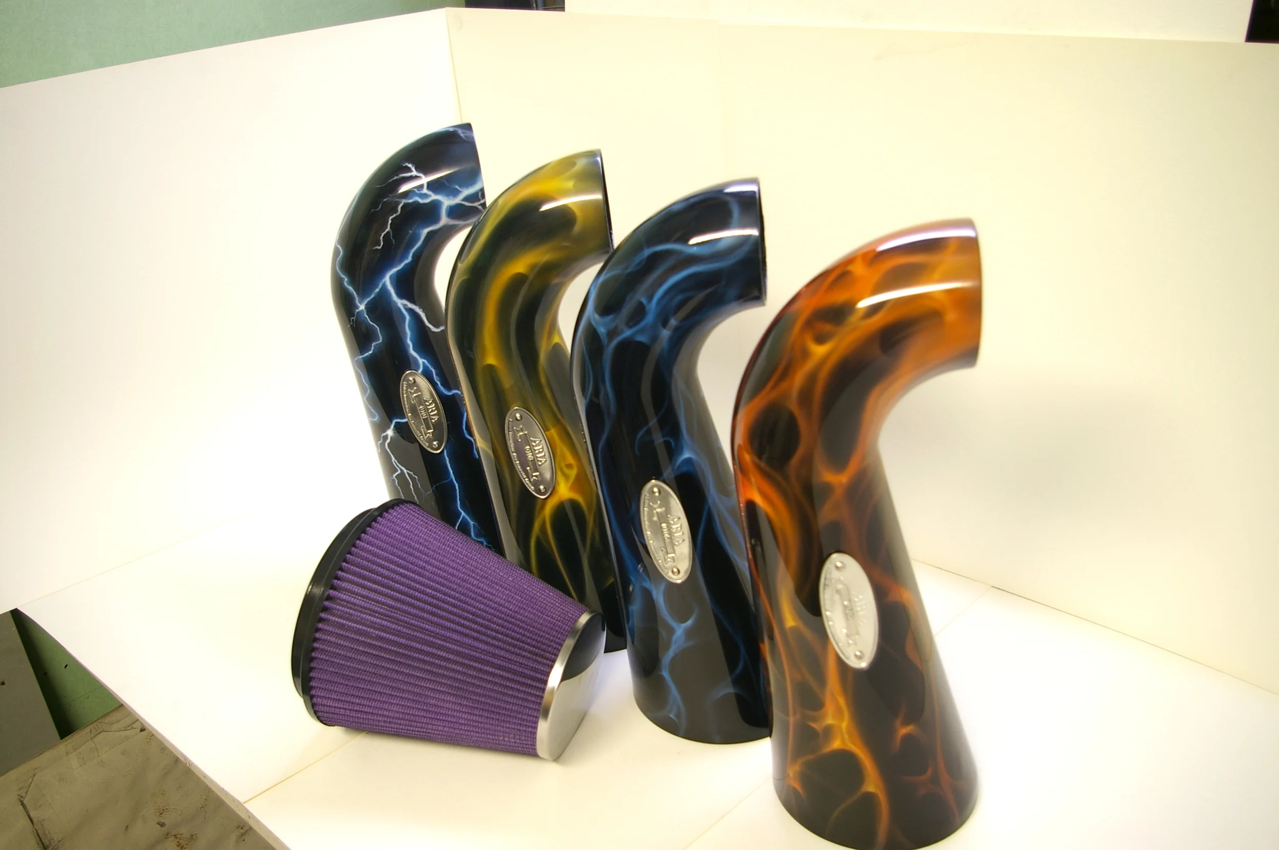 - All composite intakes were Gelcoated Black and polished to a high gloss finish with custom coloured Gelcoat available as an option. i.e. all of the Lightning and Fire series are Composite.